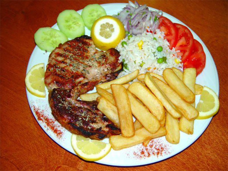 *Τα πιάτα μας συνοδεύονται με τη γαρνιτούρα της αρεσκείας σας, όπως μακαρόνια, ρύζι, πατάτες τηγανίτες, πατάτες φούρνου κ.λπ.