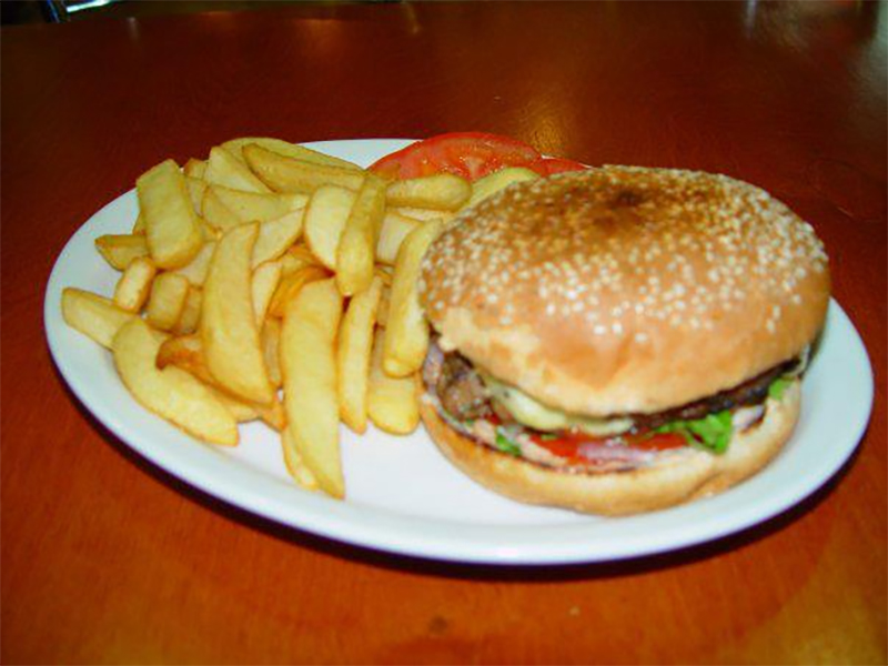 Από 11,00€Με μπέικον, τυρί τρμμένο, ντομάτα, μαρούλι & μαγιονέζα. Συνοδεύεται από πατάτες τηγανητές