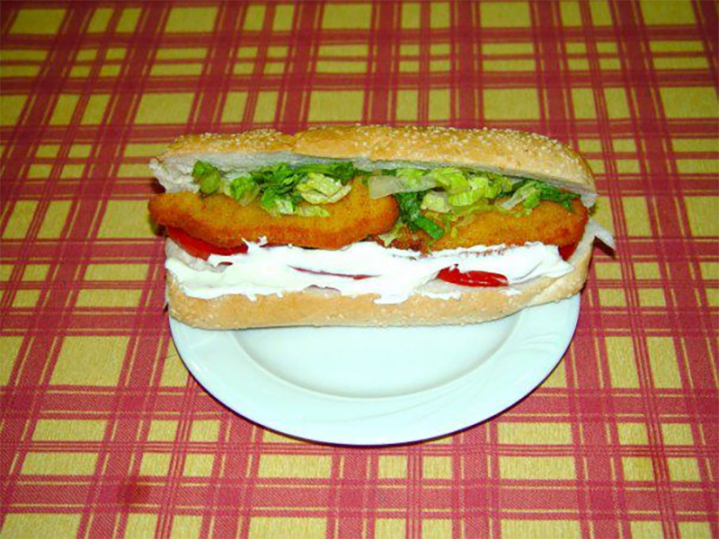 Από 7,50€Με edam, κοτόπουλο πανέ, μπέικον, ντομάτα, μαρούλι & μαγιονέζα. Συνοδεύεται από πατάτες τηγανητές